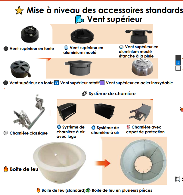 💨 Boîte à fumée pour copeaux de bois : placez la boîte à fumée sous les grilles de cuisson et au-dessus du charbon pour profiter de délicieux arômes fumés.