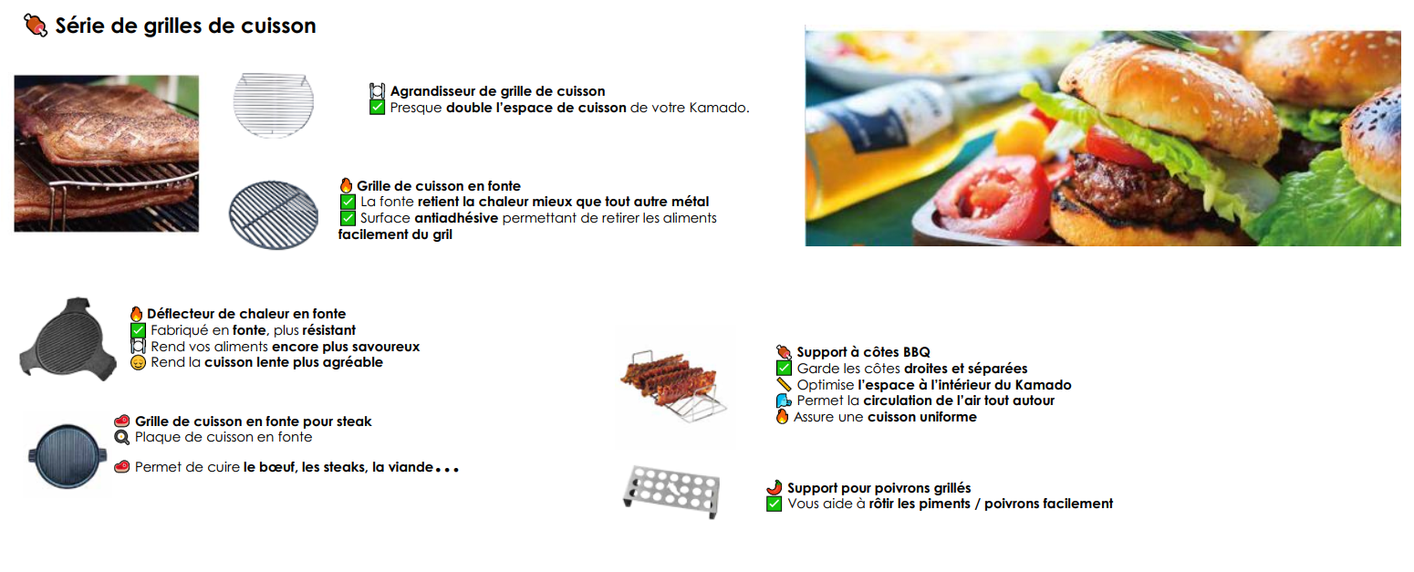 🔥 Déflecteur de chaleur : transforme votre Kamado en four à convection extérieur, retient la chaleur et garde la viande tendre et juteuse.